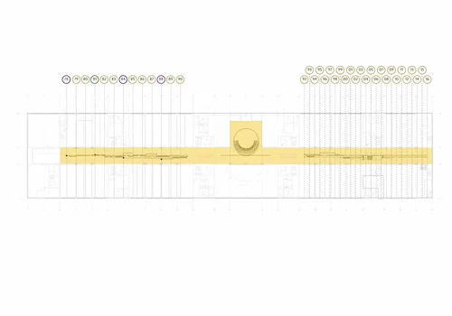 Proposal for the design of an exhibition to celebrate the 40th Anniversary of a Real Estate Company’s establishment. The exhibition will showcase the company’s main tenants; in addition to featuring key moments in the company’s history. The site, a shopping complex built in 1979, retains its distinct sense of authenticity in its material use and composition. Built as an indoor arcade, the building took advantage of its location to act as a commercial pedestrian passage between two main roads in the heart of Kuwait City. The installation will run along the length of this complex, expressing a physical timeline. Along the entire length of the timeline installation, important events of historical and cultural significance will be displayed using carefully designed visual devices or viewing ports.
