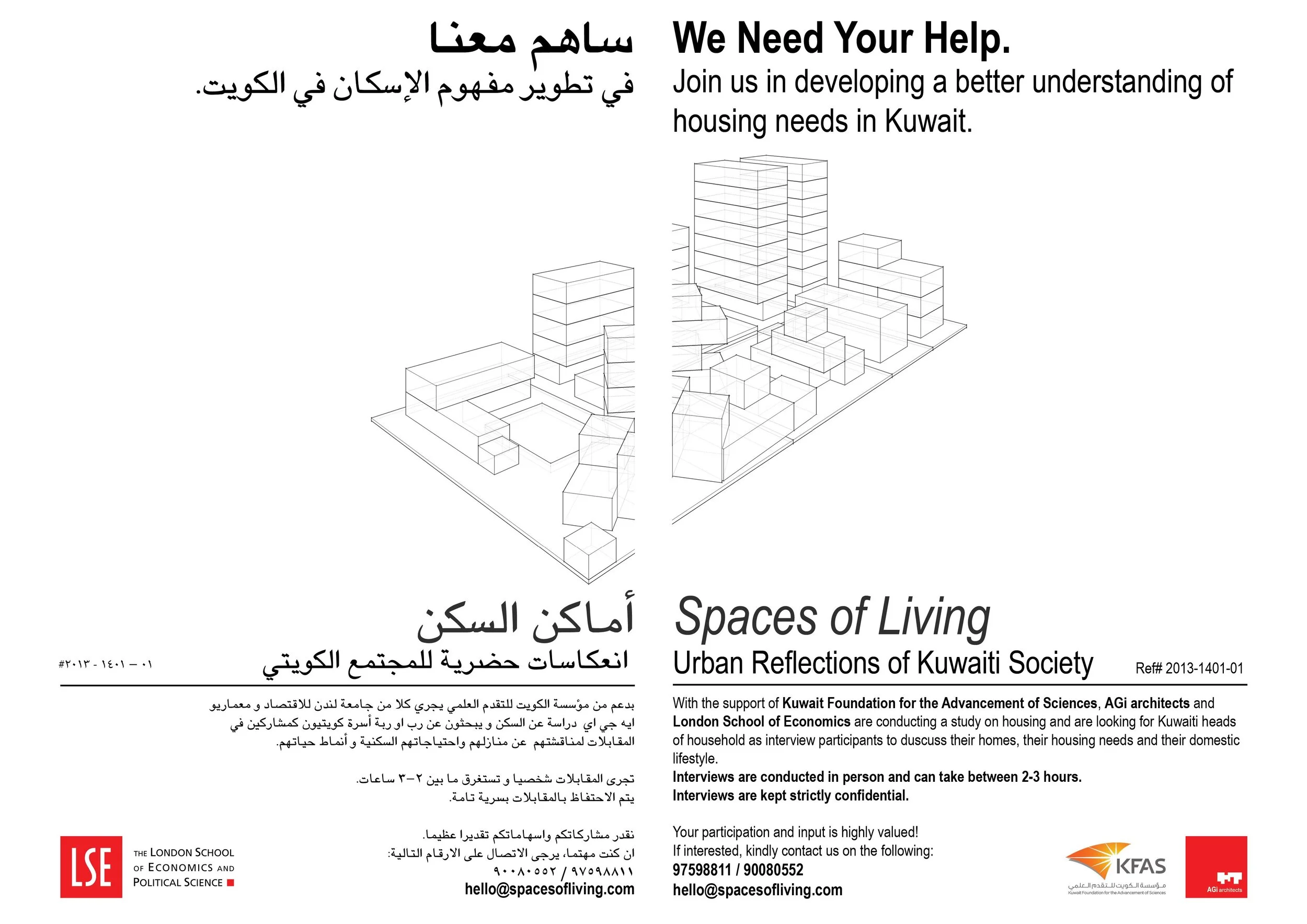 ‘Spaces of Living: Urban Reflections of Kuwait Society’ is the outcome of a two-year research project hosted at LSE Middle East Centre led by Sharifa AlShalfan, Joaquin Perez-Goicoechea and Sarah Alfraih. It was presented in a visually supported report that was externally reviewed and recommended for publication.